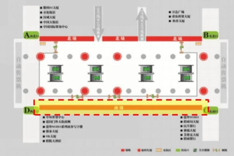 4、站廳西南側(cè)D出口:北京銀泰中心、中環(huán)世貿(mào)中心、安邦金融中心、北京國(guó)際財(cái)源中心、IFC大廈、建外SOHO西區(qū)、SK大廈、柏悅酒店