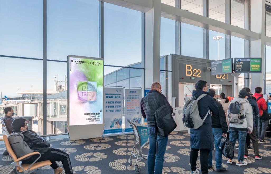 北京大興機場2F國內(nèi)出發(fā)到達區(qū)led廣告,萬事成傳媒