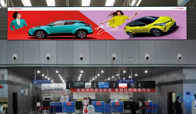 張掖甘州機(jī)場(chǎng)混合大廳辦票島 行李轉(zhuǎn)盤(pán)上方led廣告