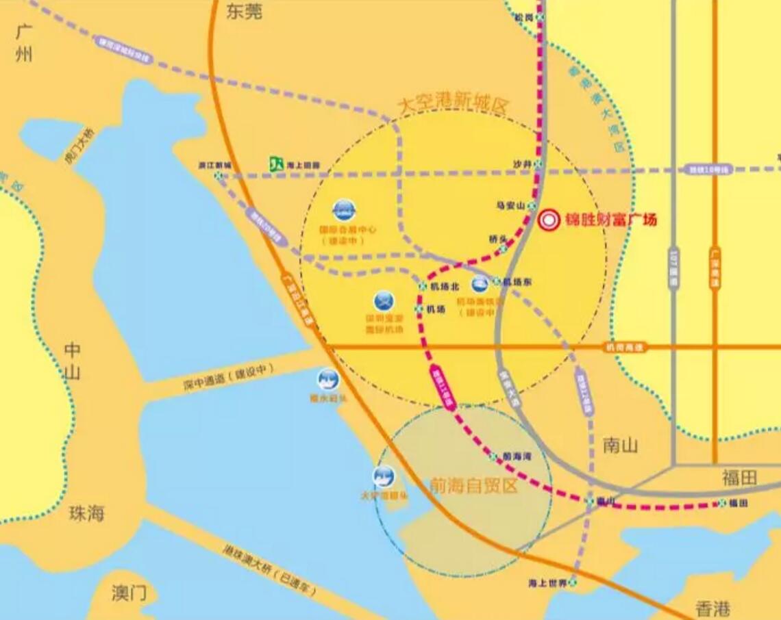 大空港是粵港澳大灣區(qū)戰(zhàn)略發(fā)展核心,而大空港核心項(xiàng)目(國(guó)際會(huì)展中心、國(guó)際會(huì)議中心、科學(xué)館、海洋新城)與本項(xiàng)目?jī)H有4公里距離。