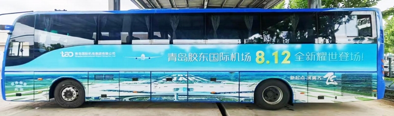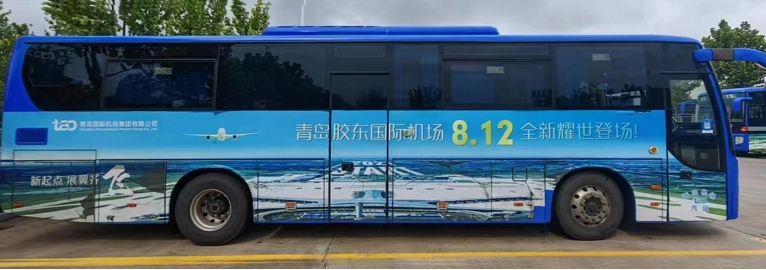 青島機(jī)場巴士廣告,青島膠東機(jī)場巴士快線廣告,萬事成傳媒
