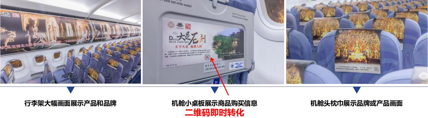通過(guò)全方位的畫面包裹,全方位塑造品牌形象在飛行途中強(qiáng)化旅客對(duì)產(chǎn)品和品牌的印象。