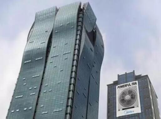 上海有個(gè)比較著名的建筑物,它的造型獨(dú)特別致,在建筑物的頂部素采用的是凸出的弧形元素,看上去像是波浪的形狀,美的公司把廣告交給了斐思態(tài)廣告公,此公司在建筑物的對(duì)面貼置了非常大型的美的風(fēng)扇的廣告牌,和弧形的建筑物頂部相對(duì),讓人看上去就像是美的風(fēng)扇把建筑物吹了起來(lái)。讓人直接感受到美的風(fēng)扇的超強(qiáng)風(fēng)力。