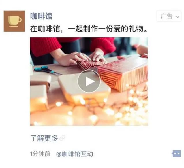 朋友圈廣告展示的位置是首次打開朋友圈的時候,在朋友圈的第五條位置,它的樣式類似于朋友發(fā)的原創(chuàng)內(nèi)容,如果不注意右上角的“廣告”字樣,很難判斷出他是朋友圈的廣告,這種廣告以不打擾朋友的形式展示出來,讓網(wǎng)民不反感,更容易接受,也被很多商家認可。朋友圈最廣告形態(tài)有常規(guī)系列、卡片系列、全幅系列三種,最常用的朋友圈廣告形態(tài)是常規(guī)廣告和卡片廣告