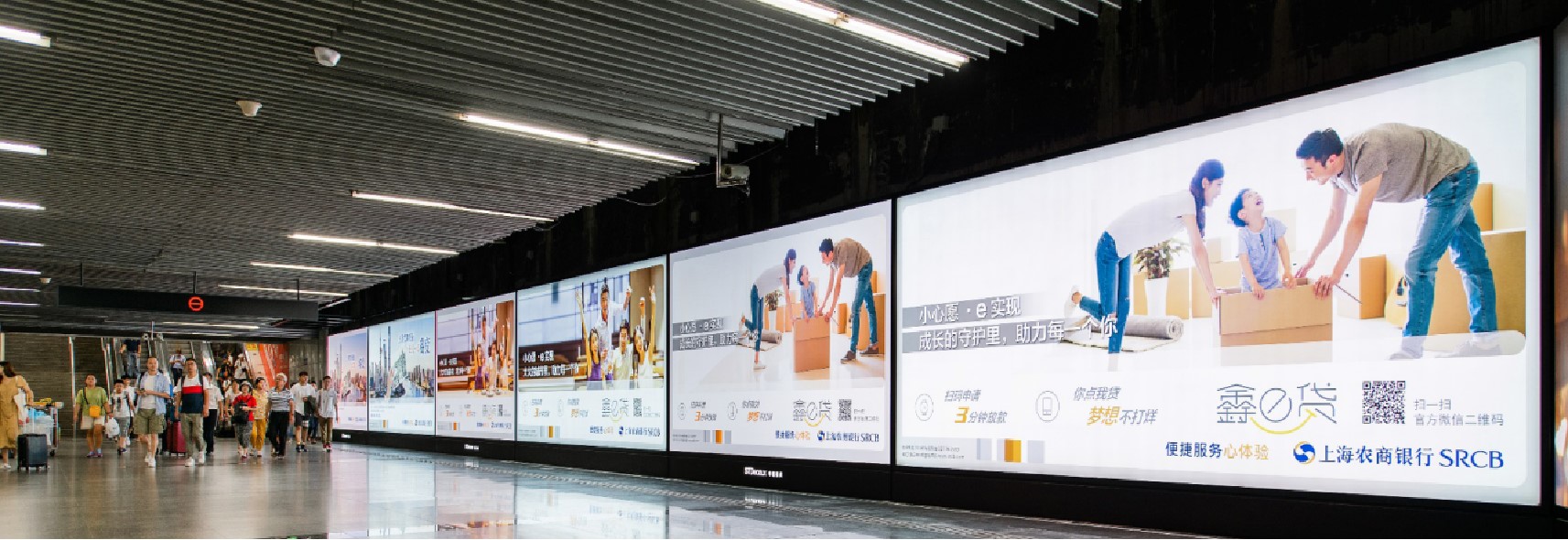 由 電子屏 與 超級動感燈箱,相互交錯組成的電子媒體通道,大面積的靜態(tài)海報與高精度的動態(tài)畫面不斷沖擊乘客視覺;頂部天花板與通道內(nèi)柱體的鏡面環(huán)境設(shè)計從空間上帶來沉浸式的3D體驗(yàn);每個區(qū)域的定向音響環(huán)繞聲系統(tǒng) 從聽覺上刺激乘客的感官體驗(yàn) ,日均客流達(dá)55萬*人次 支持動畫、TVC、電子海報等,可制作各種大型創(chuàng)意效果
