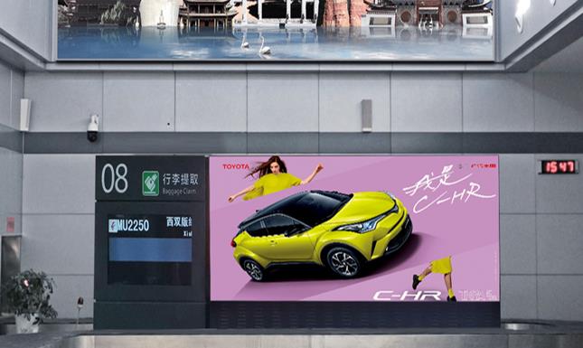 張掖甘州機(jī)場(chǎng)混合大廳辦票島行李轉(zhuǎn)盤(pán)上方led廣告,萬(wàn)事成傳媒