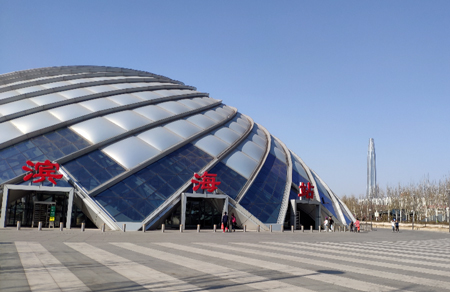 地處濱海新區(qū)于家堡金融區(qū)北端,坐落于中心商務(wù)區(qū)核心地帶,唯一深入CBD中心的高鐵站。