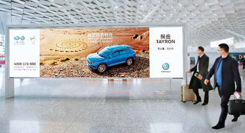 媒體價格:600萬/組 位于四層出發(fā)辦票大廳安檢通廊上方,旅客必經之路